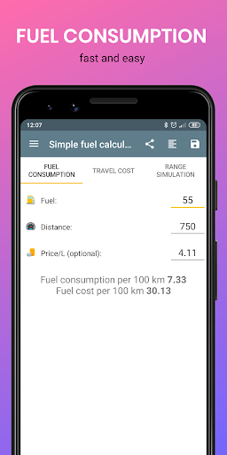 Cost Estimation: Simple fuel calculator not only calculates fuel consumption but also estimates the cost of travel per 100 kilometers, providing you with a comprehensive understanding of your travel expenses.