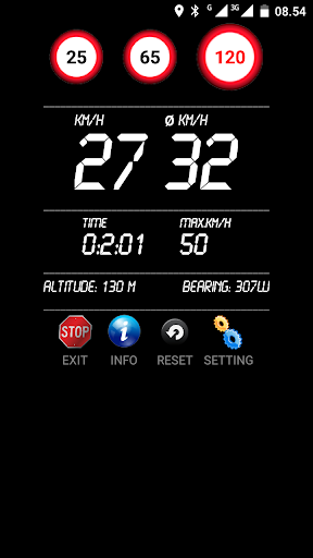 The application has speed, average speed, maximum speed, travel time, compass and altimeter.