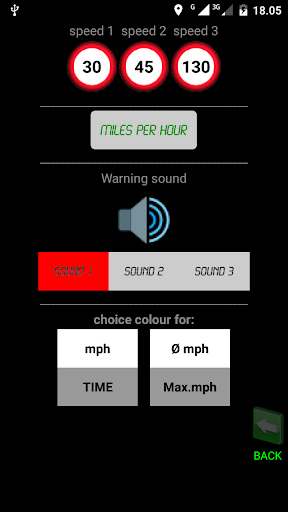 In the settings, adjust three speed limits, adjust the font colors and a sound alarm.