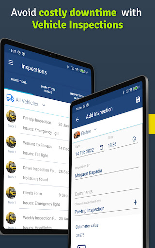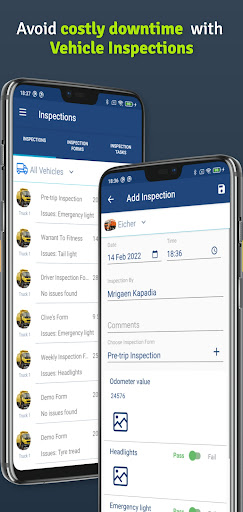 Vehicle Inspections: Perform detailed inspections from the app by creating customized inspection tasks and daily, weekly, monthly inspection forms. Inspections submitted can be viewed by the admin on the mobile app or the web app and also be printed for documentation.