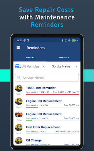 Preventive Maintenance management: Log all the services done on the vehicle and also set up reminders for upcoming services based on miles or days/months/years. Keep the health of your fleet in check and reduce your repair costs. Simply Fleet is the only truck maintenance app you will ever need. Regular maintenance can help reduce operational costs of you entire fleet.