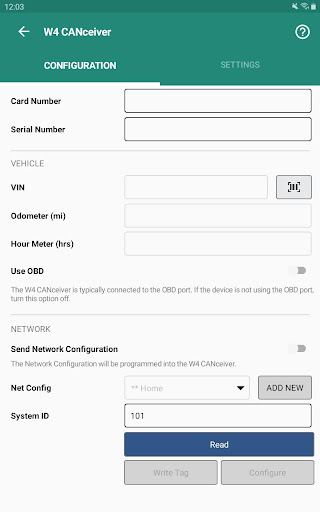 – Send W4 CANceiver Main Configuration