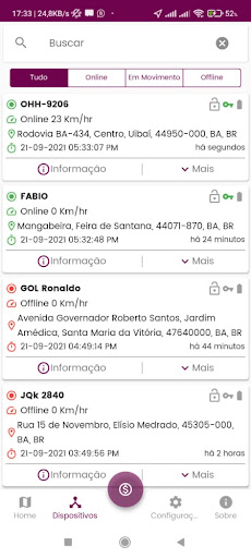 Dispositivos compatíveis são dos tipos: TK 102, TK 103, TK 303, Suntech, TLT, etc. Esses precisam ser configurados via Portal Sinal GPS