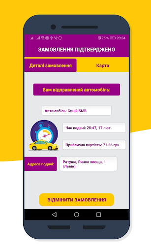 Уже під час замовлення таксі, Ви будете знати марку, номер, колір автомобіля, час подачі і орієнтовну вартість поїздки. Більш того, Ви можете слідкувати за пересуванням замовленого Вами автомобіля і побачите повідомлення про те, як змінився статус Вашого замовлення таксі онлайн, коли під’їхала машина і водій Вас чекає.