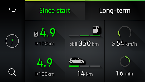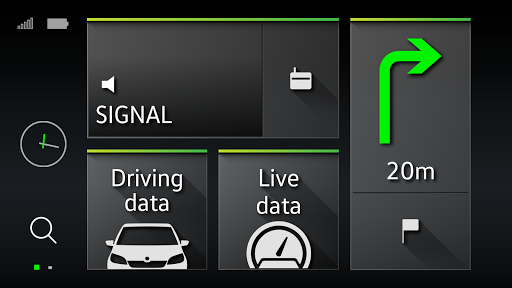 Your SmartPhone becomes a multi-tool in the new Citigo: For example, the ŠKODA AUTO Move&Fun app* makes it possible to listen to music from your SmartPhone, control radio functions, navigate offline with 2D and 3D maps as well as use handwriting recognition for destination and station search. A multifunction indicator shows the consumption, range, travel times, mileage, engine speed and coolant temperature. You can also browse through your phone book and your music files using handwriting recognition. And the DriveGreen helps you to drive efficiently to save fuel – simply from your SmartPhone.