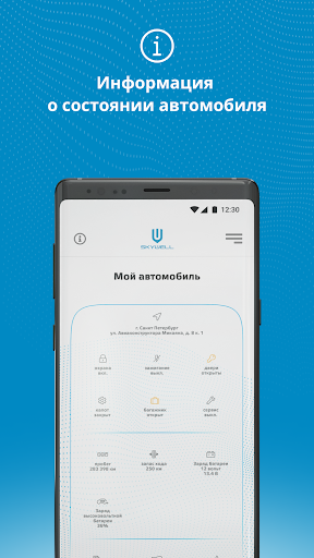 – получить информацию о состоянии автомобиля: уровне заряда аккумулятора и батареи, запасе хода, пробеге, скорости, состоянии дверей, капота и багажника