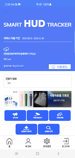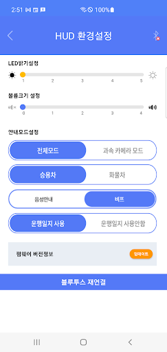 스마트 허드(SMART HUD) 어플을 이용하여 단말기의 환경설정을 할 수 있습니다.