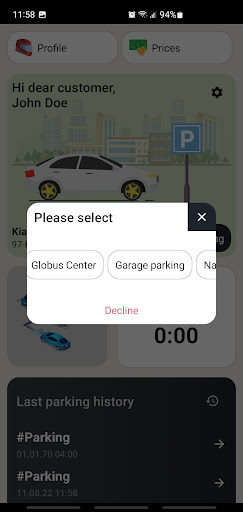 – Notifications about parking time and price