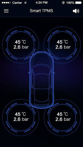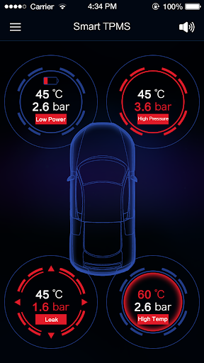 “Smart TPMS” is a designed for smart phones designed for tire pressure monitoring systems (TPMS) applications for Bluetooth 4.0+ smartphones, with Bluetooth TPMS sensor mounted on the tire pressure receiving four tires and the temperature in the car driving the process of tire pressure and temperature data to monitor, when the data is abnormal “Smart TPMS” can be a timely warning to ensure road safety appears.