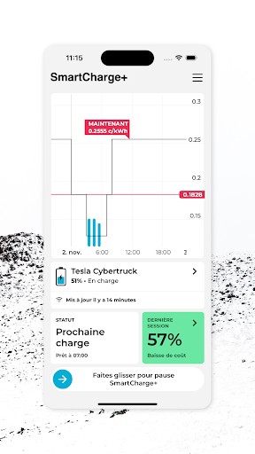 SmartCharge+ automatically charges your car when electricity is the cheapest. After you plug in your vehicle, our algorithms will automatically charge up your vehicle’s battery by your desired time, when electricity is the cheapest. You reduce the risk from price spikes and automatically lower your energy bill and carbon footprint.