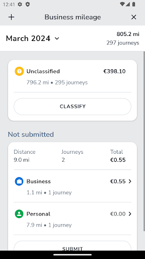 Review your vehicle journeys and your driving behaviour – synced automatically with your tracking device. With a few simple clicks, you can submit your classified journeys or commercial vehicle checks directly to your manager.