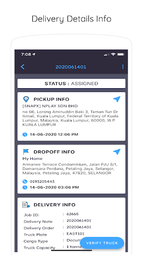 Driver mobile application to update the status of deliveries. Live Real-Time Job Tracking and Electronic POD.