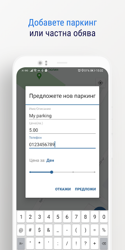 Add a parking lot or private ad for parking space/garage by pressing and holding the location on the map