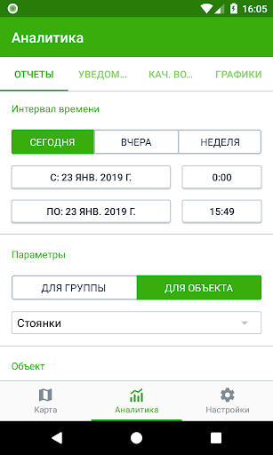 Приложение также позволяет генерировать отчеты, строить треки, отправлять команды на объекты, получать уведомления и многое другое.
