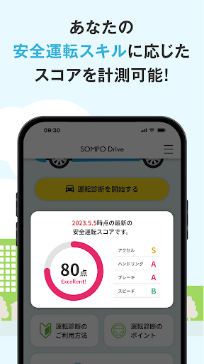 このページは概要を説明したものです。「SOMPO Drive」は「安全運転割引」の割引スコア計算に使用されるスマートフォンアプリの名称です。