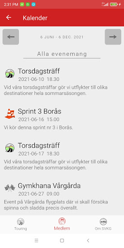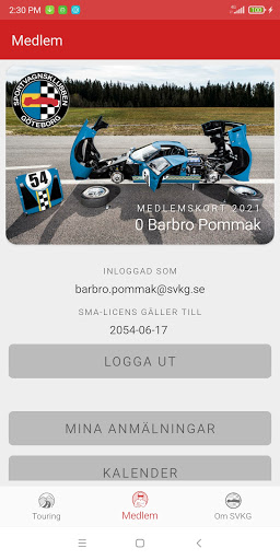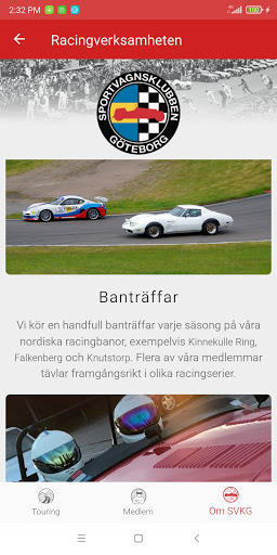 Appen för medlemmar i Sportvagnsklubben Göteborg, där du kan se ditt medlemskort, dina anmälningar, och kalendern med klubbevenemang.