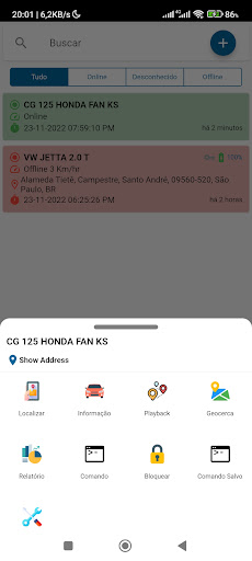 Dispositivos compatíveis são dos tipos: TK 102, TK 103, TK 303, Suntech, TLT, etc.