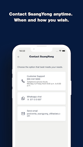 – Maintenance service and digital stamp. Keep your SsangYong’s servicing schedule up to date, thanks to the maintenance program integrated in the app. Ask for a service appointment.