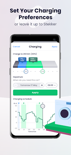 All you need to do is install the app, pick a time at which you need the car or device to be ready, and Stekker will monitor your setup, the grid, the weather and electricity prices to choose the smartest moments to use electricity.