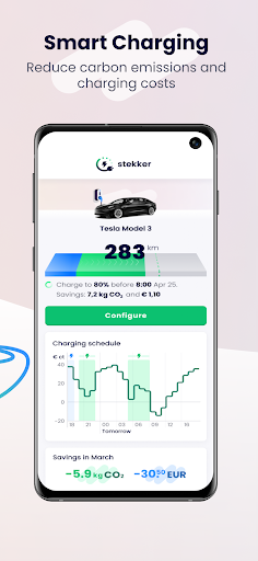 Stekker is free for non-commercial users and can currently be used to charge your EV smartly. It connects to your charge point and is also compatible with numerous electric cars for additional functionality, like Tesla, Hyundai, Kia and Volkswagen. Go to our website to check compatibility or run the wizard in the app.