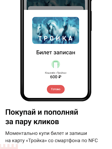 * Please note that not all devices and smartphones with NFC support «Troika» cards (NFC Mifare chip). Support does not depend on the application, but on the device itself. However, if your device does not support Troika cards, you can always write the paid tickets to the card at one of the hundreds of terminals in a place convenient for you. Please consider this before writing a review.