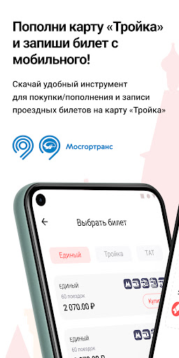With the help of «Super Troika» by Mosgrotrans, you can buy cards and travel tickets for all types of public transport (Metro, Trolleybus, Bus, Tram, Trains, etc.) at current rates (Wallet, Ediniy (All-in-one), Ediniy (All-in-one) MCD, TAT , Bus, etc.).