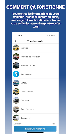Professionnels ou particuliers, votre véhicule a disparu ou vous voyez un véhicule que vous soupçonnez volé, peu importe l’endroit, inscrivez-vous. Pour vous propriétaire du véhicule volé, veuillez préciser les éléments simples demandés après la création de votre compte ou votre connexion. Si votre véhicule a été retrouvée par un de nos trouveurs, vous serez immédiatement averti d’un match. Vous pourrez ensuite visualiser l’endroit précis où il se trouve et ainsi le récupérer. Si il n’est pas retrouvé dans l’immédiat, le jour où une personne le signalera, vous recevrez une notification ainsi qu’un mail.