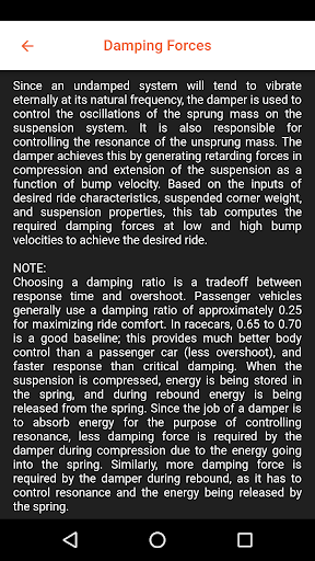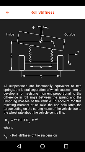 The application offers accurate and efficient analysis tools for scrutinizing vehicle characteristics of race cars, passenger vehicles and light-duty trucks. Furthermore, the application incorporates calculators that facilitate mathematical iterations for designing spring and damper based on user targets and system variables.