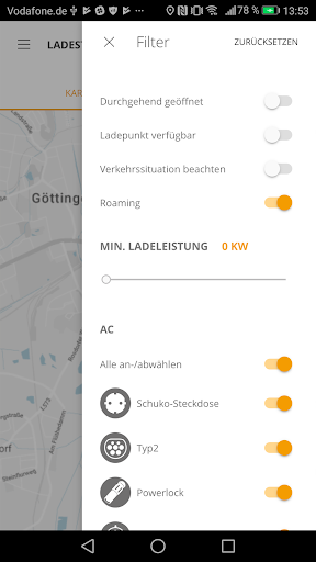 Mit Hilfe der Übersichtskarte finden Sie schnell eine passende Ladestation in Ihrer Nähe. Die Übersichtskarte zeigt Ihnen alle für Sie zugänglichen Ladepunkte an, die Sie ganz einfach mit der App freischalten können. Sie sehen auch deren aktuelle Verfügbarkeit und erhalten Informationen zu möglichen Störungen.