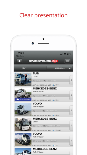 Find just the right vehicle you are looking for (commercial vehicles, municipal vehicles, forklift trucks and construction machinery) with in the practical swisstruck.ch app. The app offers the opportunity to create a basic advertisement in less than 3 minutes. Open the app, record key data and photos directly from the vehicle and immediately put online in the app. Entered advertisements can easily be made visible or invisible online and entries can be modified.