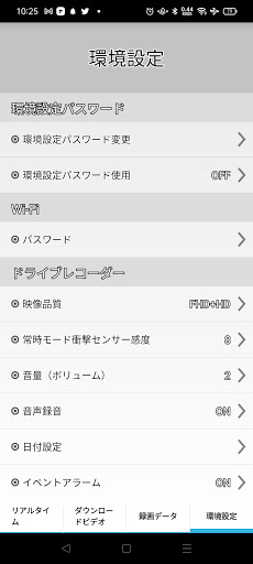アプリ内でドライブレコーダーの各種設定・操作が可能です。