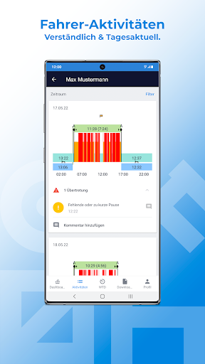 Die Tacho360 App ist eine mobile App der Tacho360 Plattform und ermöglicht die Archivierung & Auswertung der auf der Fahrerkarte gespeicherten Aktivitäten wie Lenkzeiten, Ruhepausen etc.