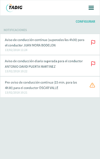 Ayuda a la supervisión de los tiempos de conducción y descanso de los conductores, enviando notificaciones antes de que se produzca la falta.