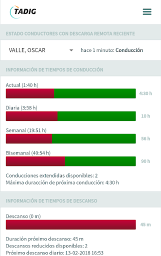 App del servicio Tadig para la gestión de la información del tacógrafo digital.