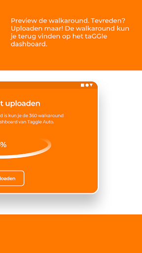 Met de taGGle360 app maak je eenvoudig zelf een 360 graden presentatie van je auto. Start de opname en loop vervolgens om de auto heen. Bekijk direct het resultaat en plaats deze online. De taGGle360 app werkt uitsluitend voor taGGleAuto abonnees.