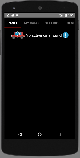 When you start the app for the first time, on the Panel tab, there is no car registered. Select the text “No active cars found”.