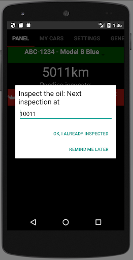 The app requests every Monday the adjustment of the odometer, so from there, daily checks the items defined for the maintenance of each active vehicle registered, reminding the user to inspect them.