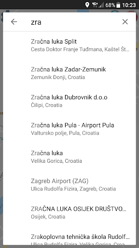 Prilikom tipkanja prikazuju se adrese i klikom na neku od ponuđenih odabrali ste odredište.