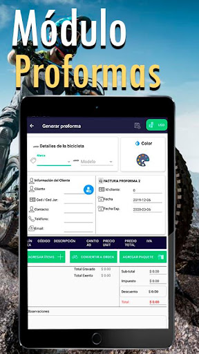 Taller Bike es la aplicación POS perfecta para tu negocio: Ventas de Bicicletas, Repuestos, Reparación de Bicicletas y cual negocio que necesite emitir Facturas Electrónicas. Sin publicidad, sin contratos y sin compromisos.