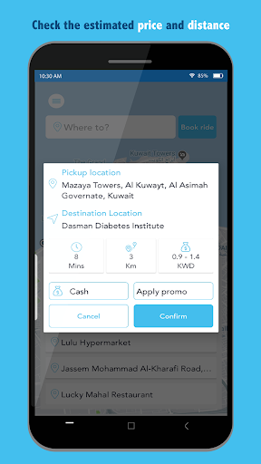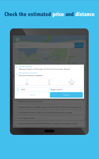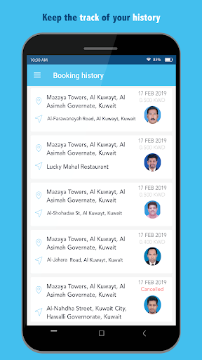 • Taxi Availability: See the number of available taxis in your area, in addition to the estimated arrival time to your location. Talyaa Covers all Areas of Kuwait, book your ride & be sure that you will reach your destination in the most convenient way.