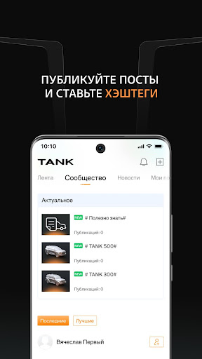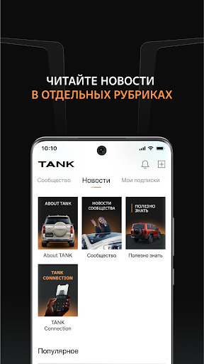 Любители автомобилей откроют для себя статьи о путешествиях, новости автоиндустрии и анонсы мероприятий от бренда TANK. Приложение дает возможность обмениваться опытом и мнениями с другими пользователями и размещать собственные публикации, позволяя почувствовать себя частью сообщества и разделить с другими свои интересы.