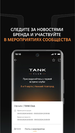 Приложение TANK – это новый формат брендового приложения, совмещающий функции дистанционного управления, информацию о продукте, сообщество пользователей, актуальные новости, доступ к мероприятиям, а также экспертные и познавательные материалы.