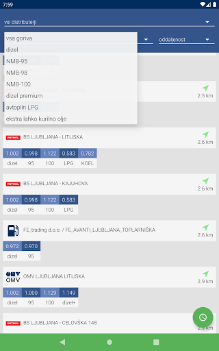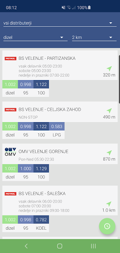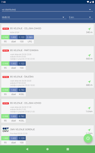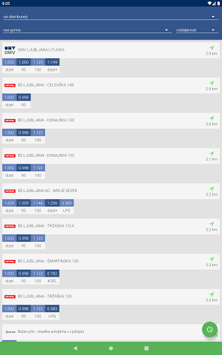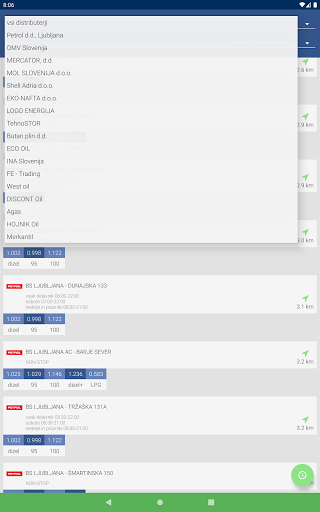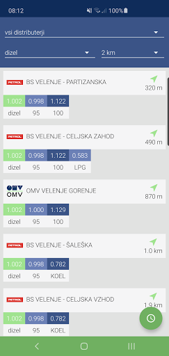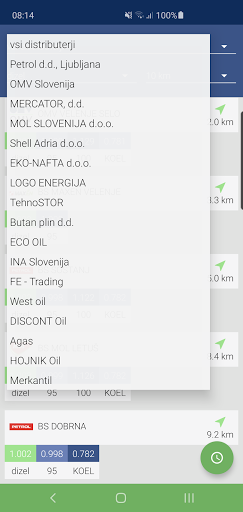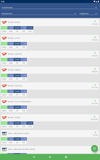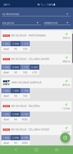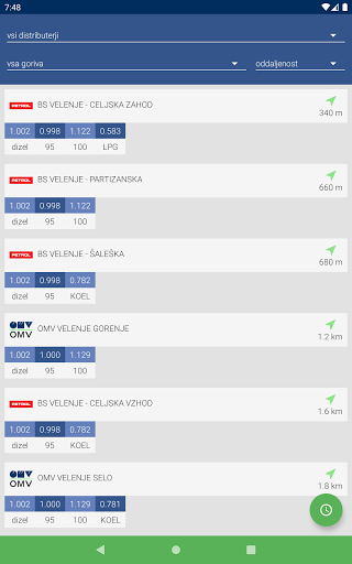 Bencinske servise lahko filtrirate po distributerjih, vrsti goriva in oddaljenosti od vaše trenutne lokacije.