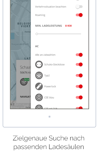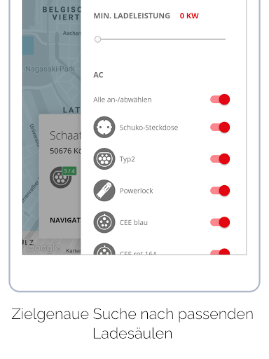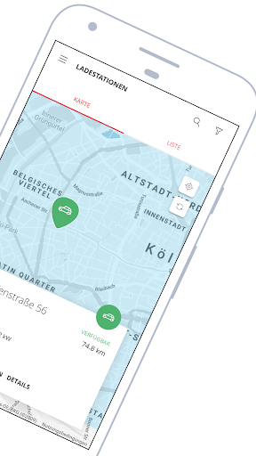 Die Übersichtskarte zeigt Ihnen alle für Sie zugänglichen Ladepunkte inklusive der für Sie gültigen Tarife an. Den Ladevorgang können Sie direkt aus der App starten.