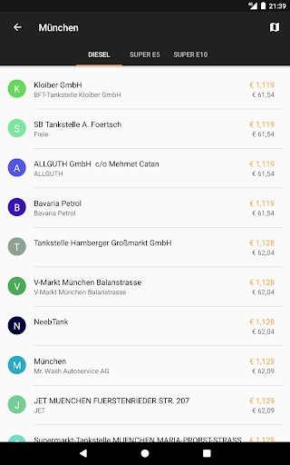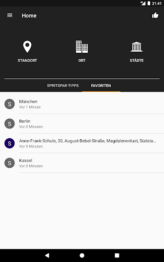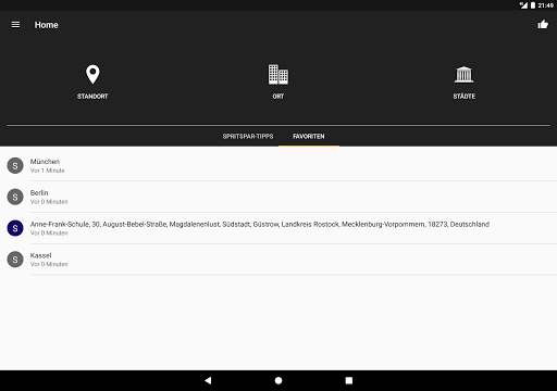 • Tankstellen per Standort, in der Nähe einer Adresse oder per Bundesland bzw. Stadt finden