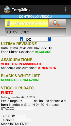Verifica la scadenza revisione, scadenza assicurazione, furto veicoli