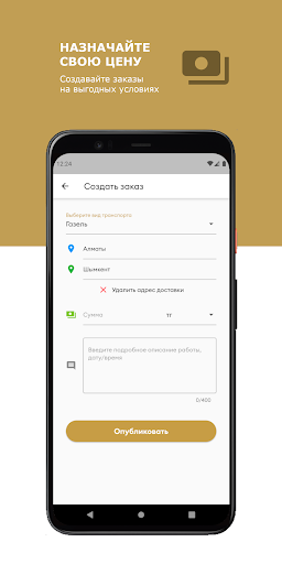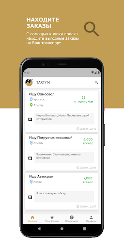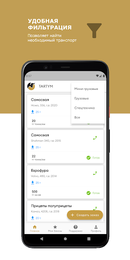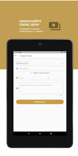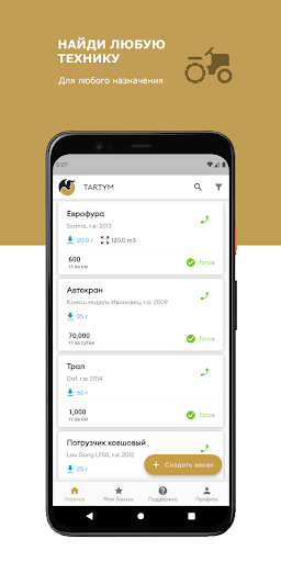 Приложение позволяет связывать заказчика с владельцами спец. техники. Заказчик публикует заказ, где исполнитель (владелец спец. техники) видит в заказы в режиме реального времени. Более того, при публикации исполнителю приходит оповещение о новом заказе. После принятия заказа, номер телефона заказчика и исполнителя становятся доступными.
