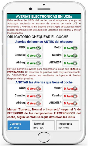 Antes de realizar la valoración del coche seria importante chequear las UCEs o Centralitas Electrónicas del Coche con las apps de diagnosis de Autoxuga o con un Equipo de Diagnosis Profesional para anotar en esta app los fallos, averías y estado de uso de los componentes electrónicos del coche para que el precio final del coche se ajuste a la realidad