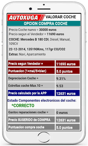 Con esta app se puede calcular con precisión el precio de los Coches de Ocasión partiendo del PRECIO de coche nuevo, kilómetros recorridos, fecha fabricación, uso que tuvo, avería electrónicas de las UCEs, grado de deterioro de los componentes electrónicos y electromecánicos, arranques y paradas que soportó y grado tecnológico de innovación sobre emisiones de CO o de CO2.