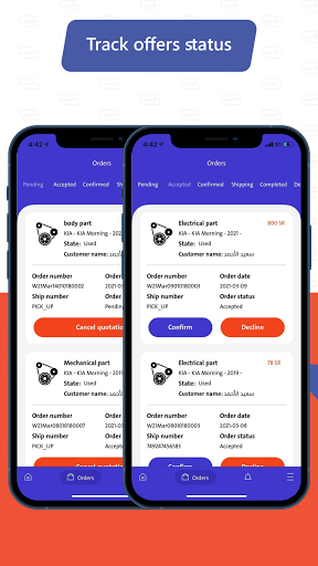 The main objective of the App is receiving all consumers’ orders after verifying the vehicle and its model and sending it to the specialized importers to facilitate the process of selling parts as efficiently as possible “minimum effort” with allowing an “Accept/Reject order” feature to the importers to ensure the importer only taking orders of parts available.